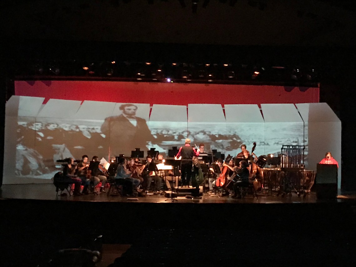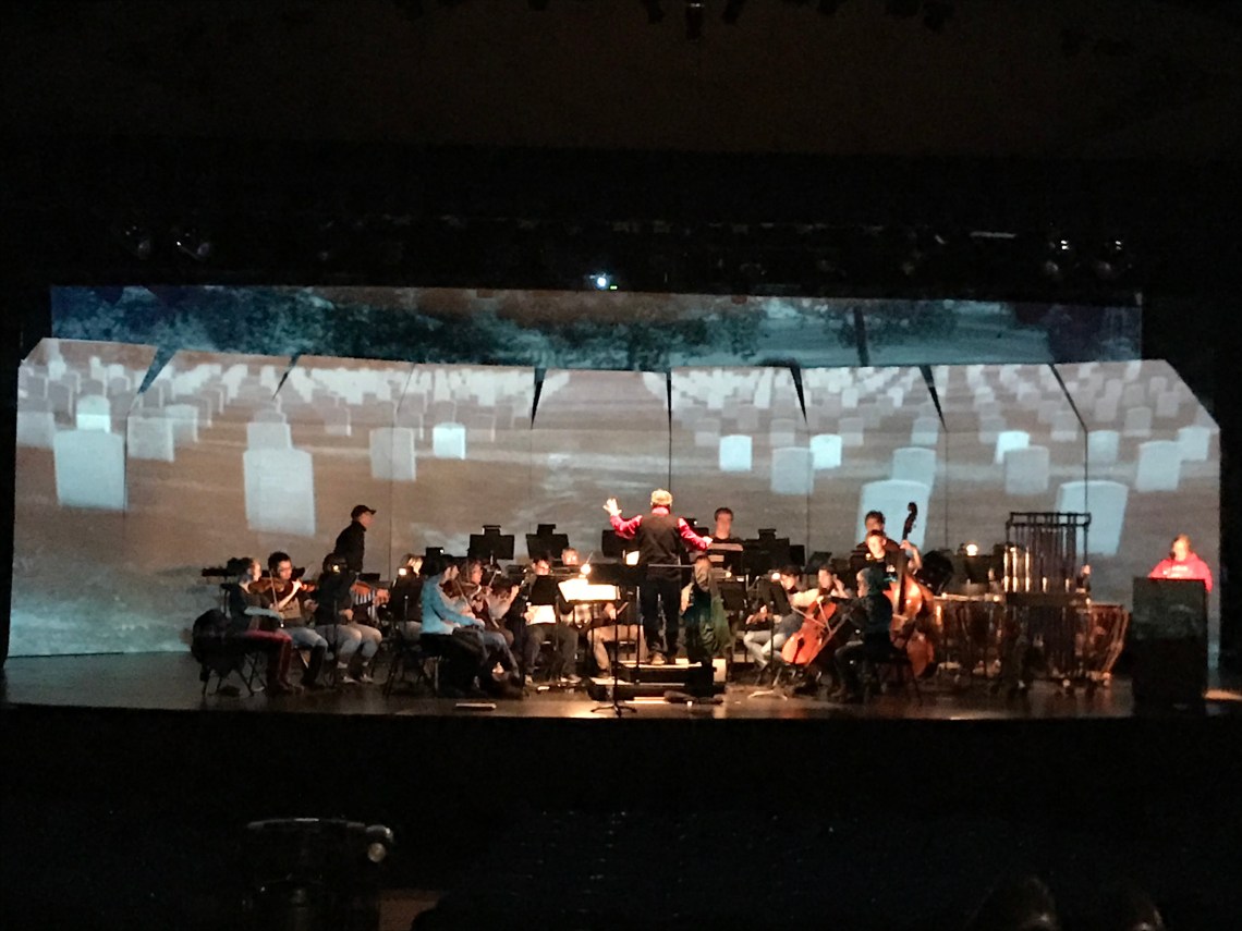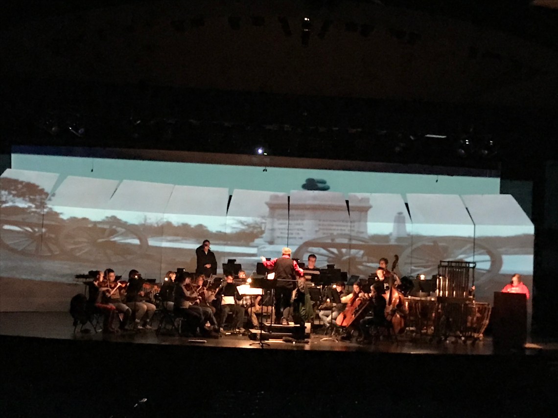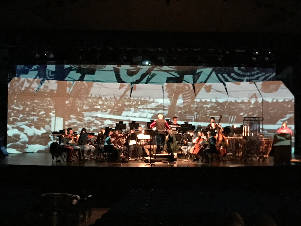 Various symphony and concert band events with Creative Commons sourced images and motion graphics for projection mapping